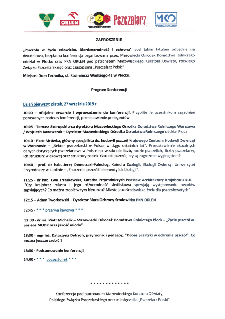 Pszczoła w życiu człowieka – konferencja pszczelarska w Płocku 17 września 201917 września 2019 adminBez kategorii