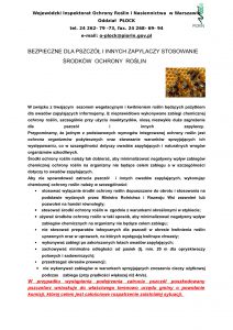 Państwowa Inspekcja Ochrony Roślin i Nasiennictwa – Oddział w Płocku wystosowała do wszystkich gmin okolicznych powiatów i Starostw Powiatowych Płocka, Sierpca i Gostynina specjalne pismo które powinno trafić do rolników i władz samorządowych naszego terenu. Pismo to (załącznik poniżej) informuje o zagrożeniach dla pszczół i innych owadów zapylających wynikających z niewłaściwego stosowania środków chemicznych w ochronie roślin.