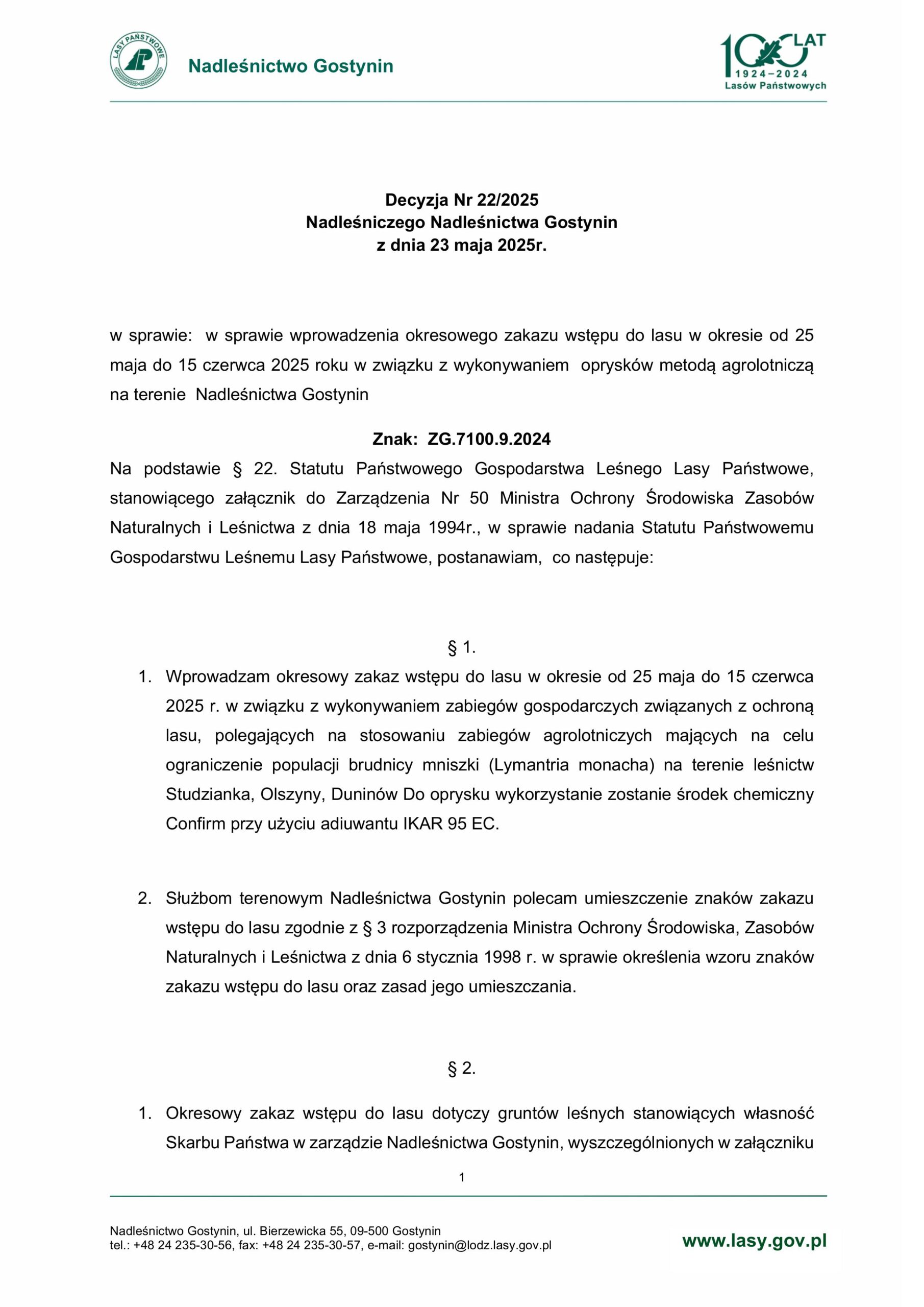 Zakaz wstępu do lasu – Nadleśnictwo Gostynin